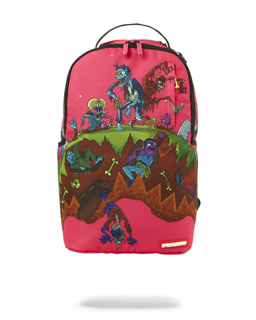 Dimensions: 18" x 6" x 11.5" •Front zipper pocket•Side pockets•Zippered Stash pocket • Ergonomic mesh back padding•Adjustable Straps for custom sizing • Nylon Zippers with Metal Hardware • Metal "Sprayground Authentic" badge •Slide through back sleeve connects to Carry on luggage to free your hands